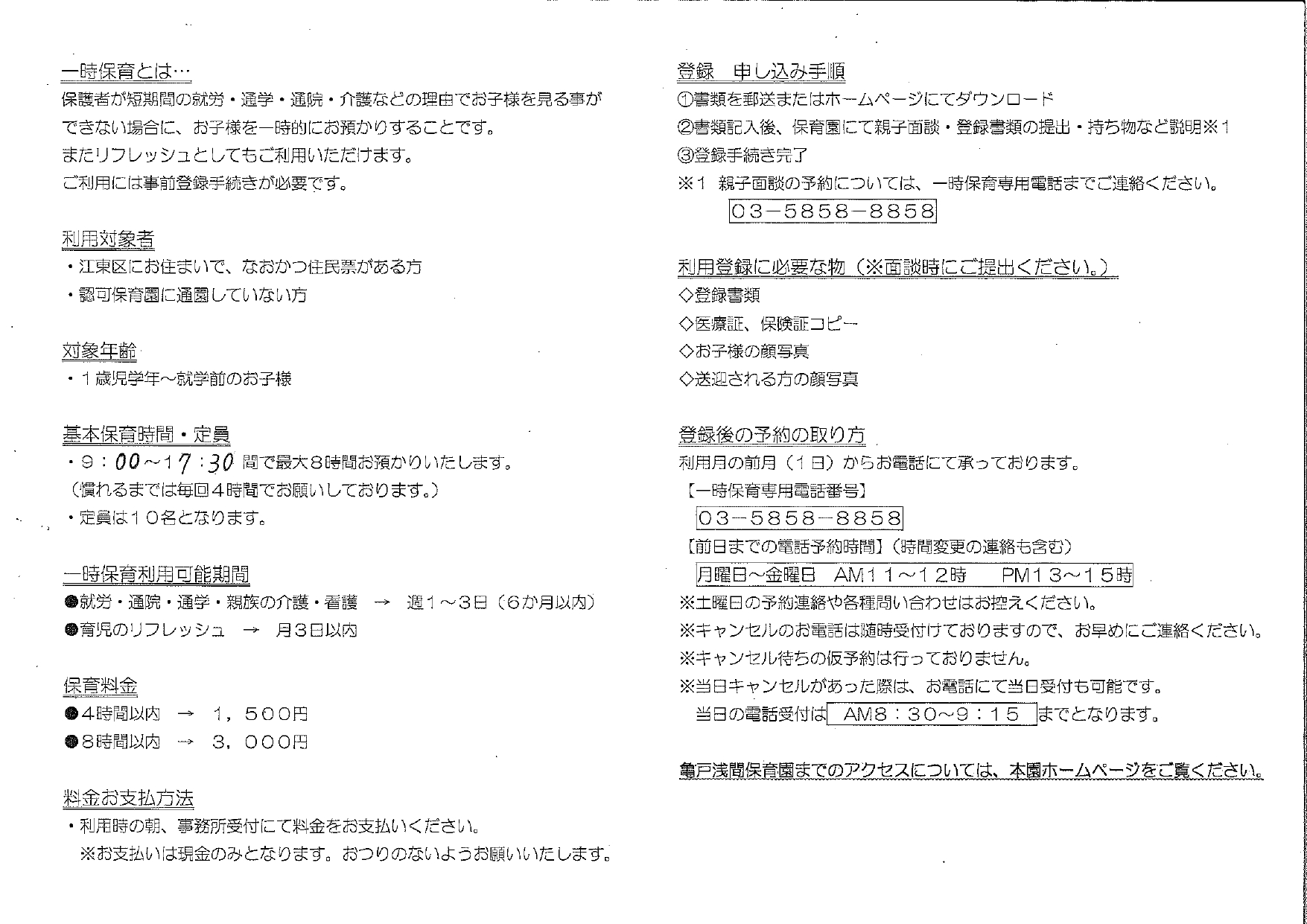 一時預かりのご予約はお電話( 03-5858-8858)にてご連絡ください。